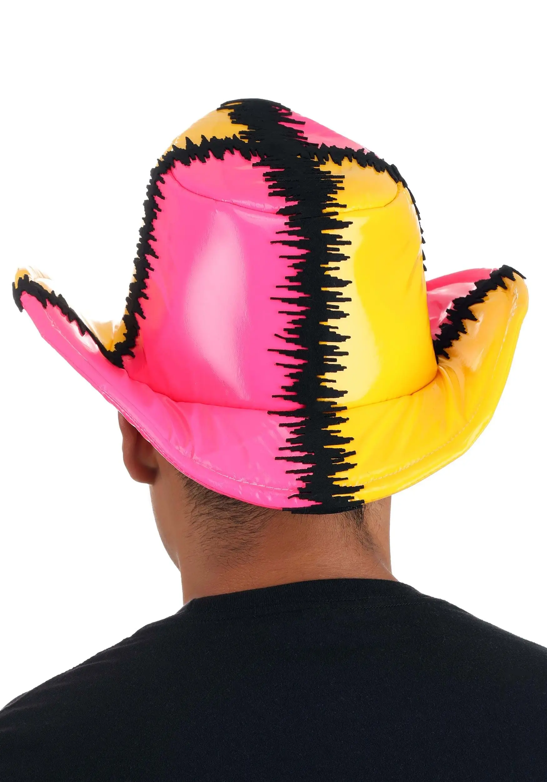 This is a Pink & Yellow Randy Savage Deluxe Cowboy Hat.