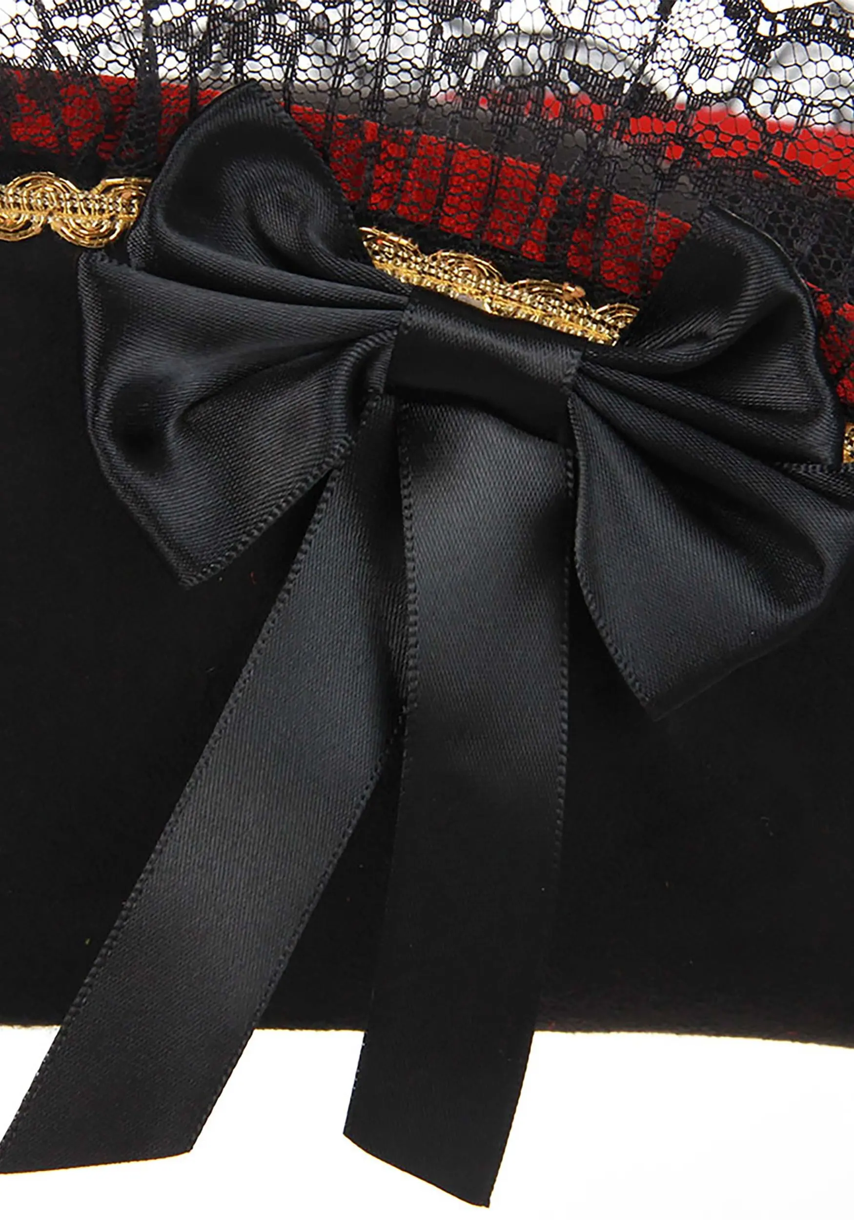 Whatever type of pirate costume you like wearing while you party, adding this Lady Buccaneer Black Hat will make you a truly glamorous scourge of the high seas! The tall brimmed bicorne cap gives you the look of a masterful pirate ship captain, and the lacy and colorful ribbon trim show that you’re as skilled with your style as you are with your sword!