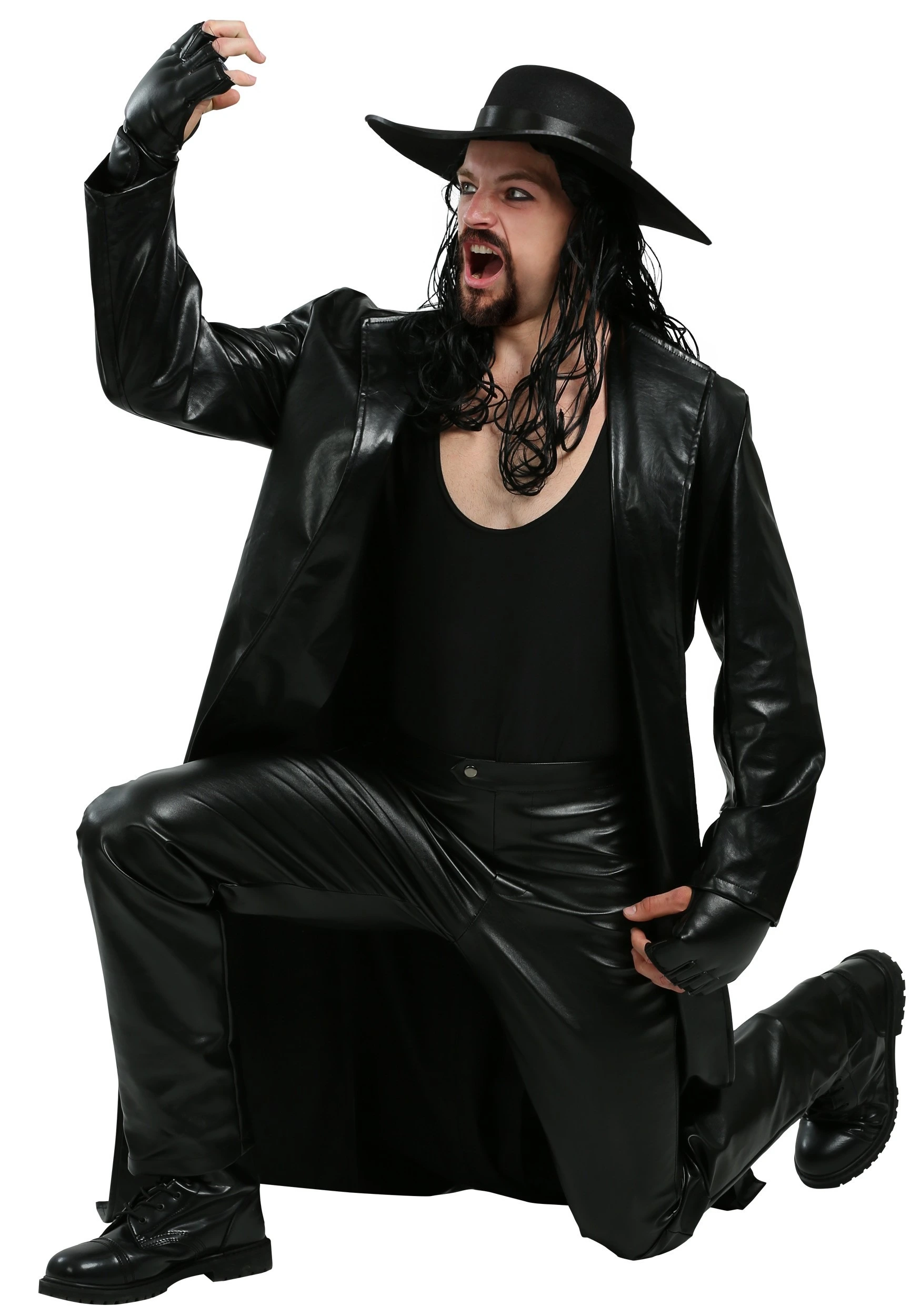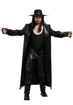 Our in-house design team studied the outfits of the wrestling icon for many years and we finally were able to design a costume that fully embodies the wrestler’s deadly look while also being comfortable to wear. This Undertaker costume comes with all the pieces you need to comfortably assume the role of the WWE wrestler, but only for limited periods of time! (Trust us, this costume bears such a strong resemblance to the outfit worn by the real Undertaker, that you may be expected to perform the Tombstone Piledriver on your foes if you wear it for more than a day.) The costume comes with a black top, pants, and overcoat that turn you into a force to be reckoned with. The matching hat gives you an ominous look that will have any opponent fearing for his life. When you wear it, everyone will know that you’re ready to rumble and that the bell tolls for them!