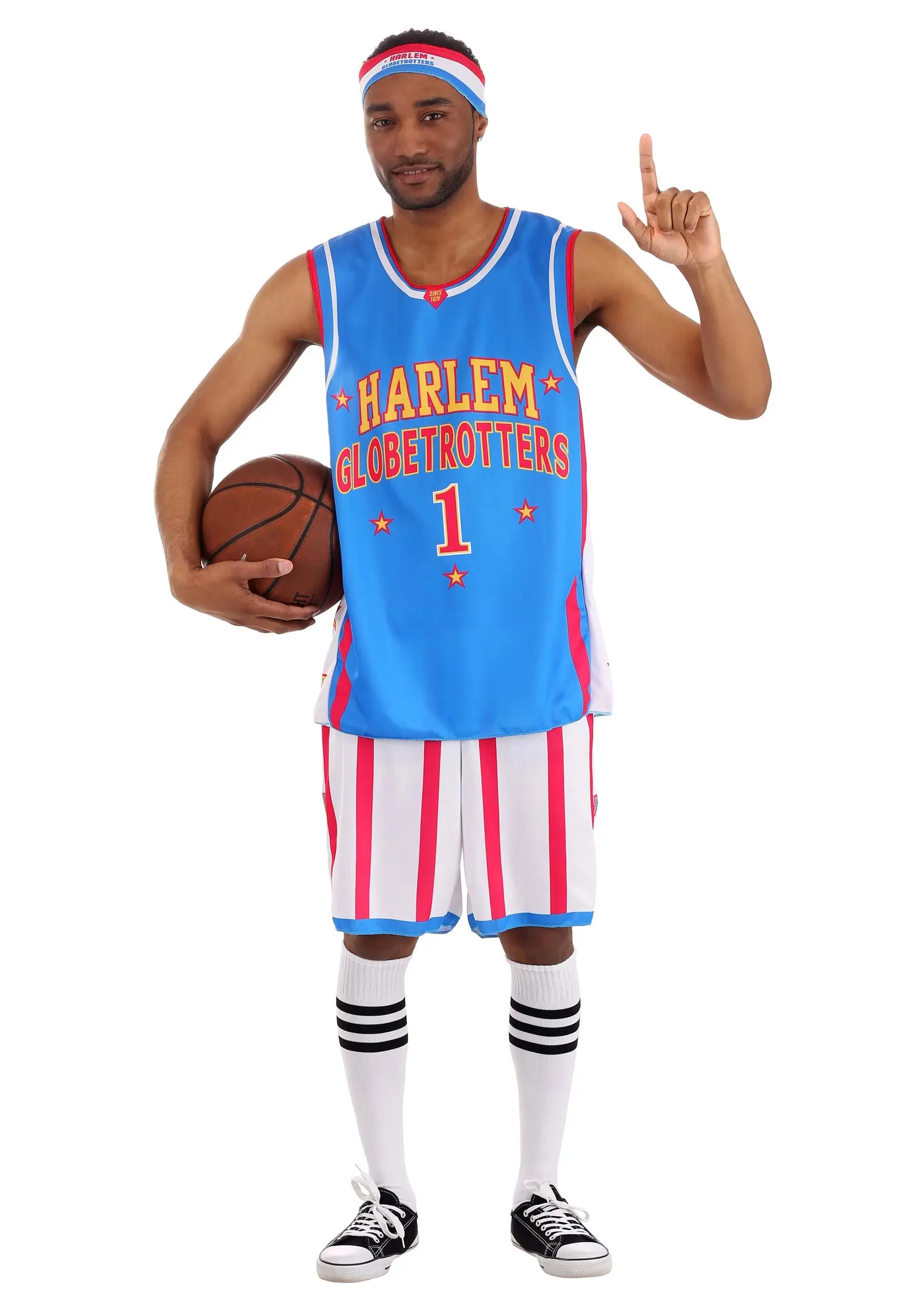 You can really wow the crowd by getting your skills honed before you head out in this outfit, but even if you don’t quite have the rapid-fire dibble mastered, you can still look just like one of the famous basketball stars from the team with this Harlem Globetrotters costume.