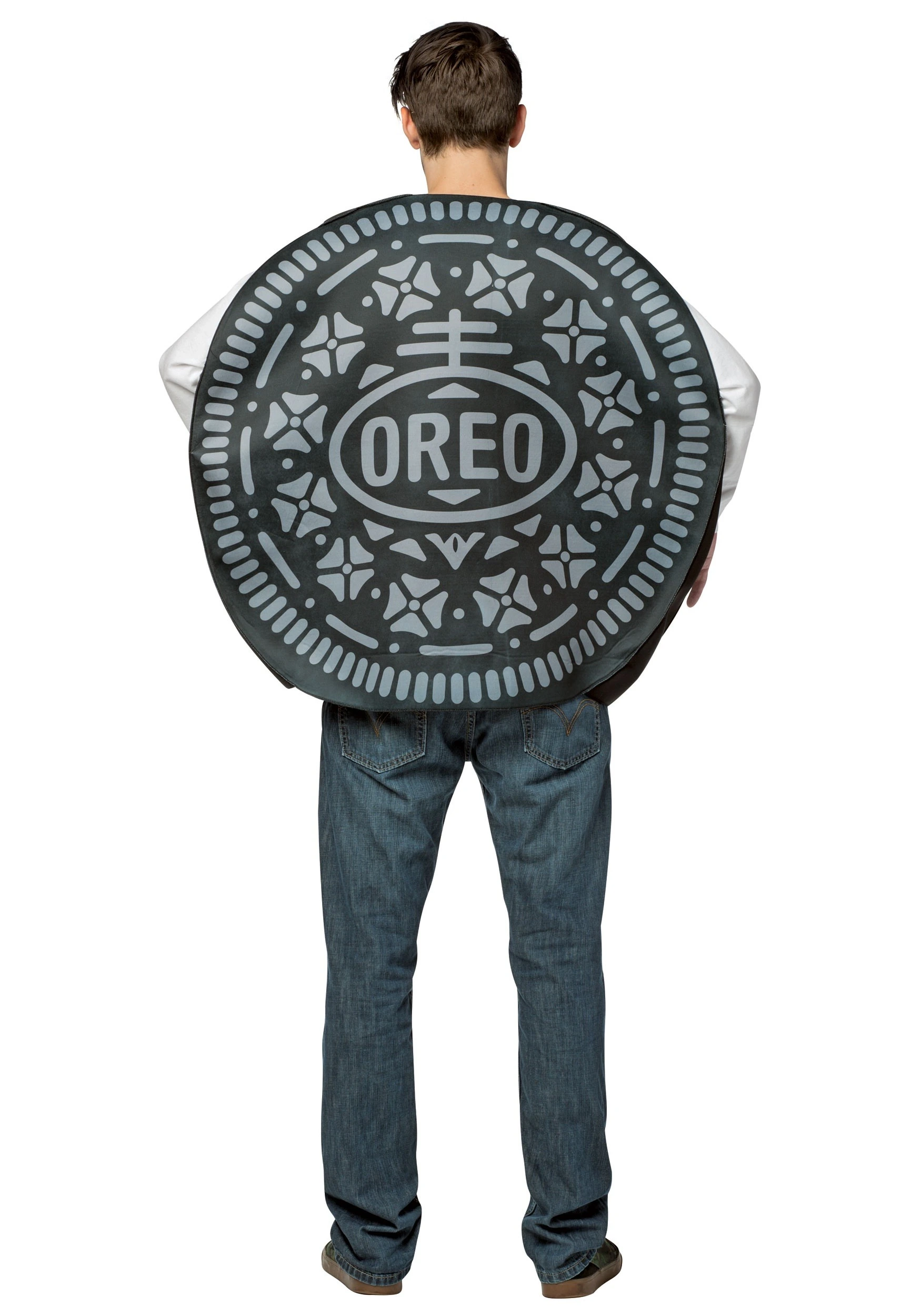 This Oreo cookies costume is a quick and easy way of bringing the cookie community together! Whether they’re the type that eats them with milk or the type that breaks them apart before eating them, this wacky tunic just has a way of putting a smile on anyone’s face. It’s made of a soft-sculpted material and is shaped to look like the classic cookie treat. It has printed grooves and the “Oreo” symbol printed on the front and back. The side of the tunic is white to look like the creme filling on real cookies. Once you have it on, you may just be ready for a little dip in a glass of milk!